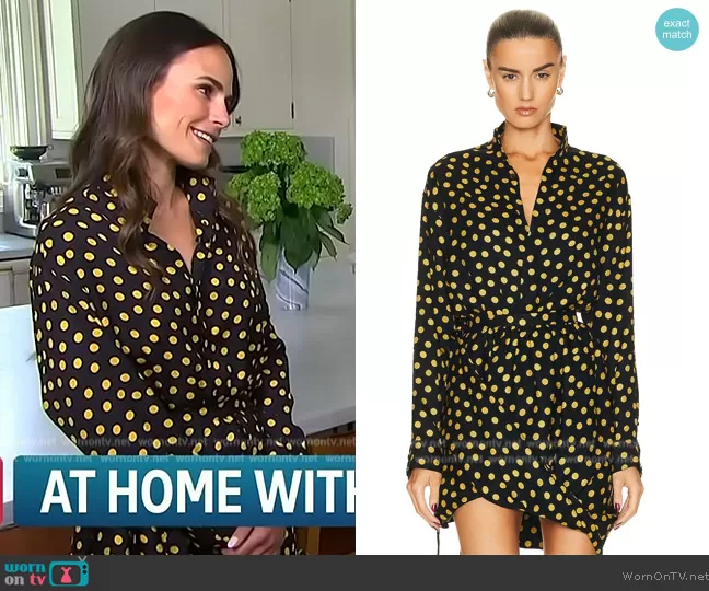 on Access Hollywood on NBC was spotted wearing this black polka dot dress on Access Hollywood on Jun 13 2023's episode. 's Bodysuit is the Printed Bodysuit by Alaia . 's Skirt is the Polka Dot Silk Knotted Miniskirt by Alaia.