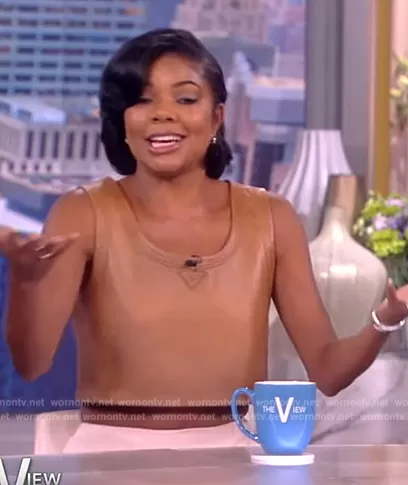 on The View on ABC was spotted wearing this brown leather tank on The View on Jun 14 2023's episode. 's Top is the Nappa Leather Top by Prada.