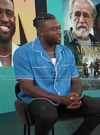 on Access Hollywood on NBC was spotted wearing this blue shirt with white piping on Access Hollywood on Jun 14 2023's episode. 's Shirt is the Bandana-Print Button-Up Shirt by Rhude.