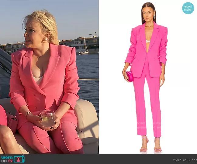 Shannon Beador on The Real Housewives of Orange County on Bravo was spotted wearing this pink blazer and pants on The Real Housewives of Orange County on episode 'Friendship Overboard' (17x02) in Jun 2023. Shannon's Blazer is the Kris Blazer by Cinq a Sept . Shannon's Pants is the Brianne Pant by Cinq a Sept.