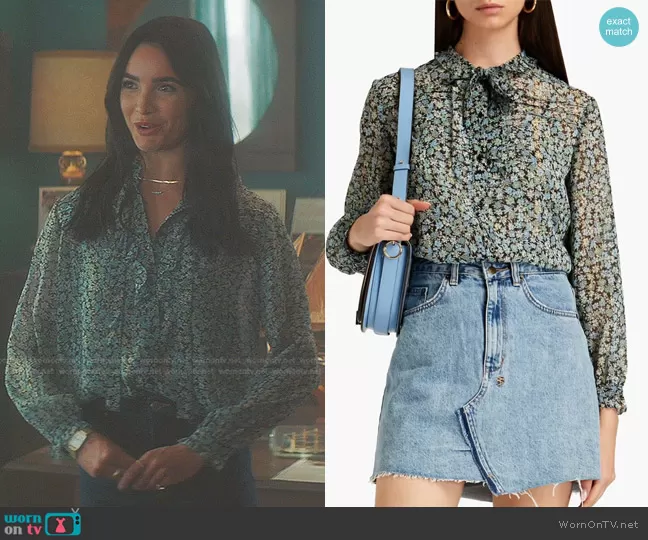 Bess (played by Maddison Jaizani) on Nancy Drew on The CW was spotted wearing this floral print tie neck blouse on Nancy Drew on episode 'The Danger of the Hopeful Sigil' (4x03) in Jun 2023. Bess's Top is the Cenaza Blouse by Maje.