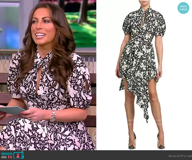 Alyssa Farah Griffin on The View on ABC was spotted wearing this floral print twist neck dress on The View on Jun 15 2023's episode. Alyssa's Dress is the Floral Silk High-Low Mini-Dress by Stella McCartney.