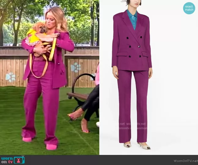 Sara Haines on The View on ABC was spotted wearing this purple double breasted blazer on The View on Jun 15 2023's episode. Sara's Blazer is the Double Breasted Blazer by Isabel Marant . Sara's Pants is the High-waisted tailored trousers by Isabel Marant.