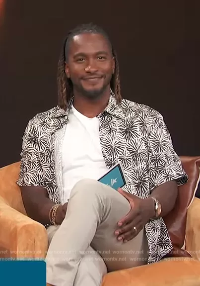 Scott Evans on Access Hollywood on NBC was spotted wearing this Urchin print shirt on Access Hollywood on Jun 15 2023's episode. Scott's Shirt is the Sea Urchin Short Sleeve Lyocell & Linen Button-Up Shirt by Sandro.