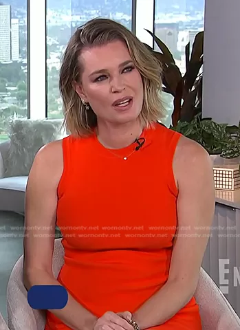 on E! News on E! was spotted wearing this orange sleeveless dress on E! News on Jun 13 2023's episode. 's Dress is the Fitted Mini Dress in Orange by Victoria Beckham.