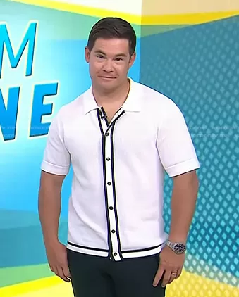 on Today on NBC was spotted wearing this white contrast trim shirt on Today on Jun 20 2023's episode. 's Shirt is the Icon Che Knitted T-Shirt by Reiss.