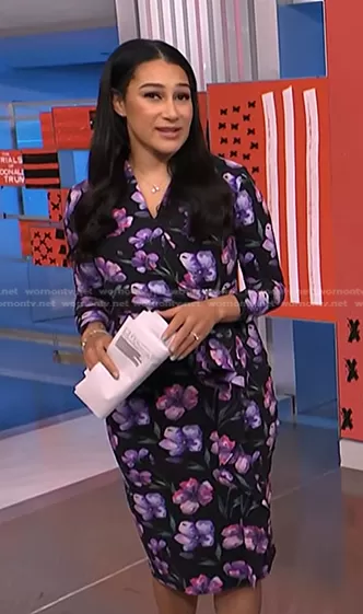Morgan graced the screen of NBC News Daily, epitomizing floral elegance in a spellbinding black dress adorned with delicate purple flowers. The garment, a masterful creation by the iconic Chiara Boni La Petite Robe, exuded a harmonious blend of sophistication and playful charm. Beyond the captivating color palette, the dress boasted long sleeves — perfect for both style and comfort. However, the true pièce de résistance was its flattering wrap bodice, cinching at the waist to highlight Morgan's silhouette with utmost grace. While viewers tuned in for the news, they couldn't help but be drawn to Morgan's impeccable fashion statement. For those who found themselves smitten by this dress, there's a silver lining: this exclusive masterpiece is available for a grand showcase in one's own wardrobe, exclusively at the renowned Saks Fifth Avenue.