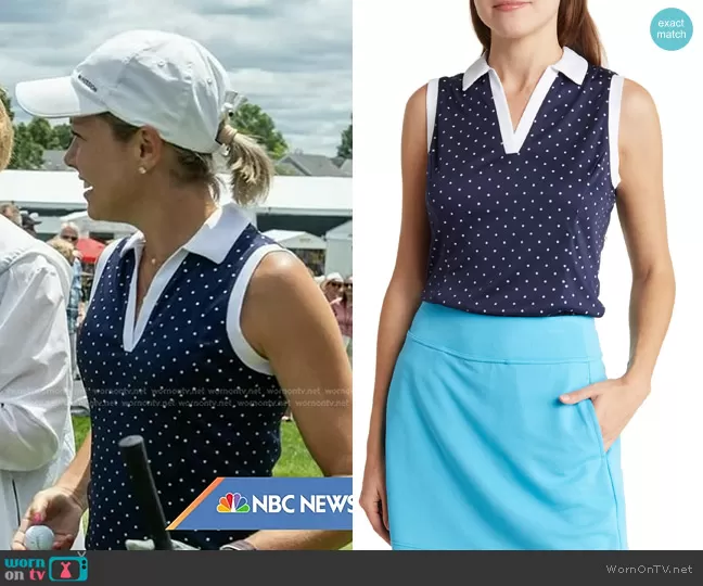Dylan Dreyer on Today on NBC was spotted wearing this navy polka dot sleeveless top on Today on Jun 22 2023's episode. Dylan's Top is the Polka Dot Airflow Top by PGA Tour.