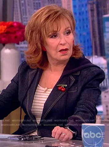 Joy Behar on The View on ABC was spotted wearing this Joy denim hooded blazer on The View on Oct 04 2023's episode. Joy's Blazer is the Khloe Hooded Denim Blazer by Cinq a Sept.