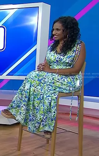 on Today on NBC was spotted wearing this green print maxi dress on Today on Jun 23 2023's episode. 's Dress is the Floral Tie Shoulder Maxi Dress by Maggy London.