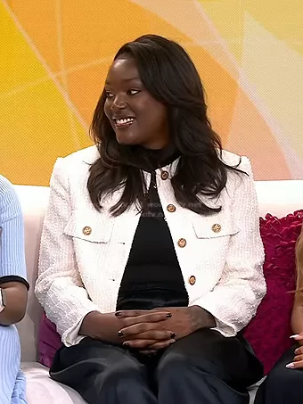 on Today on NBC was spotted wearing this white tweed jacket on Today on Jun 23 2023's episode. 's Jacket is the Covina Boucle Jacket by ASTR The Label.