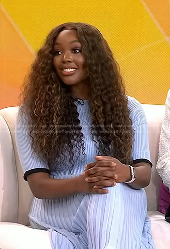 on Today on NBC was spotted wearing this blue ribbed dress on Today on Jun 23 2023's episode. 's Dress is the Pleated Silk-Blend Knit Maxi Dress by Proenza Schouler.
