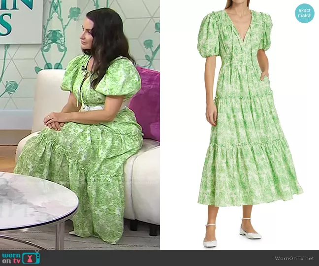 on Today on NBC was spotted wearing this green floral puff sleeve dress on Today on Jun 23 2023's episode. 's Dress is the Philippa Puff-Sleeve Maxi Dress by Derek Lam 10 Crosby.