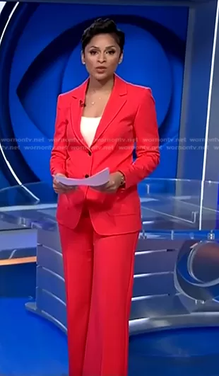 Jericka Duncan on CBS Evening News on CBS was spotted wearing this red pant suit on CBS Evening News on Jun 23 2023's episode. Jericka's Jacket is the Waverly Single-Breasted Jacket by Kobi Halperin . Jericka's Pants is the Drea Wide-Leg Pants by Kobi Halperin.