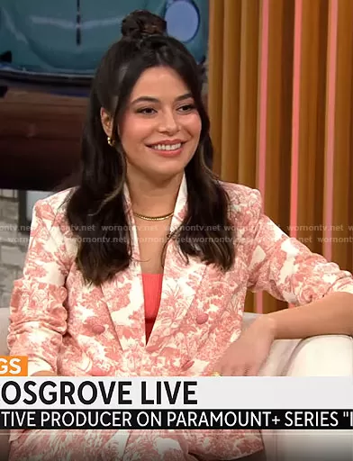 on CBS Mornings on CBS was spotted wearing this pink floral suit on CBS Mornings on Jun 22 2023's episode. 's Jacket is the Brooke Blazer in Rose Tan Multi by L'Agence . 's Pants is the Ludivine Pants in Rose Tan Multi by L'Agence.
