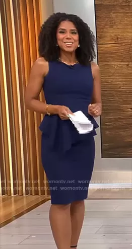 Adriana Diaz on CBS Mornings on CBS was spotted wearing this navy peplum dress on CBS Mornings on Jun 24 2023's episode. Adriana's Dress is the Peplum Dress by Chiara Boni La Petite Robe .