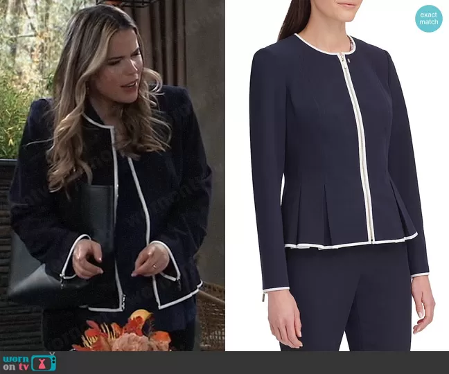 Tommy Hilfiger Zip-Front Peplum Jacket worn by Sasha Gilmore (Sofia Mattsson) on General Hospital