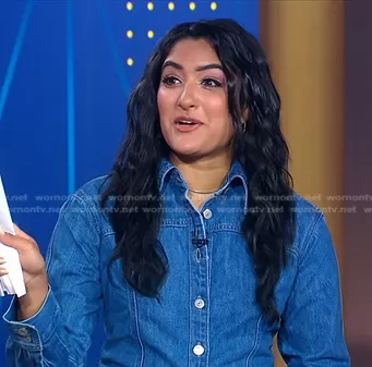 Reena Roy on Good Morning America on ABC was spotted wearing this denim shirtdress on Good Morning America on Jun 23 2023's episode. Reena's Dress is the Shay Denim Dress by Levi's.