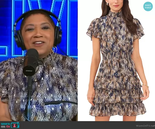 Deja Vu on Live with Kelly and Mark on Disney ABC Home Entertainment was spotted wearing this animal print ruffle dress on Live with Kelly and Mark on Apr 22 2024's episode. Deja Vu's Dress is the Smocked Tiered Flutter-Sleeve Mock-Neck Dress by MSK.