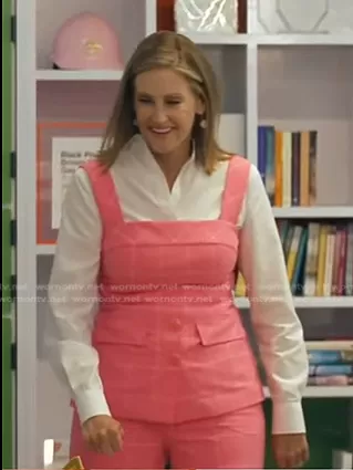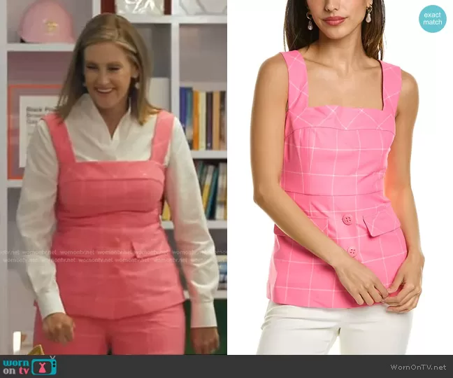 on Good Morning America on ABC was spotted wearing this pink check peplum top and pants on Good Morning America on Jun 26 2023's episode. 's Top is the Jeni Top by Trina Turk . 's Pants is the Carillo Pants by Trina Turk.