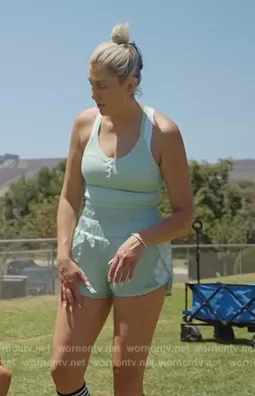 Gina Kirschenheiter on The Real Housewives of Orange County on Bravo was spotted wearing this mint printed shorts on The Real Housewives of Orange County on episode 'We Cut It Close(ed)' (17x03) in Jun 2023. Gina's Top is the Movement Free Throw Henley Crop Top by Free People Movement . Gina's Shorts is the The Way Home Logo Shorts by Free People Movement.