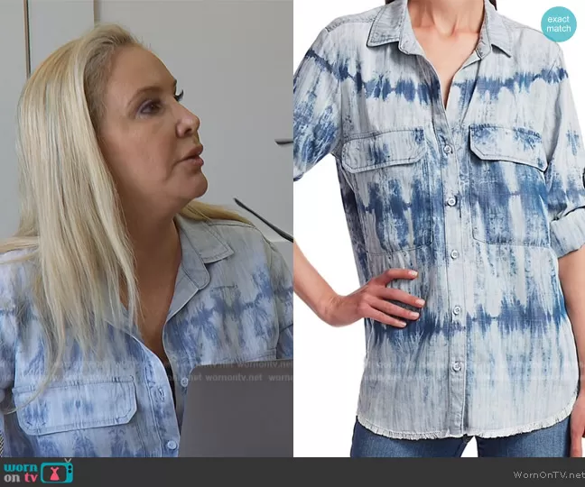Shannon Beador on The Real Housewives of Orange County on Bravo was spotted wearing this blue tie dye shirt on The Real Housewives of Orange County on episode 'We Cut It Close(ed)' (17x03) in Jun 2023. Shannon's Top is the Tie Dye Utility Shirt by Bella Dahl.