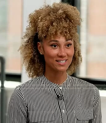 Ally Love on Today on NBC was spotted wearing this black striped band collar shirt on Today on Jun 27 2023's episode. Ally's Top is the Collarless Slim Signature Daphne Stripe Blouse by Equipment.