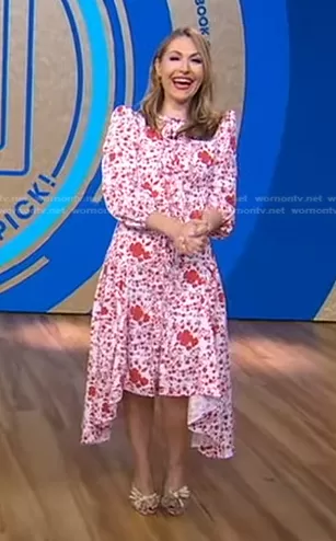 Lori Bergamotto on Good Morning America on ABC was spotted wearing this floral dress and sandals on Good Morning America on Jun 27 2023's episode. Lori's Dress is the by Naya Rea . Lori's Shoes is the Penny Knotted Lamé Sandal by Loeffler Randall.