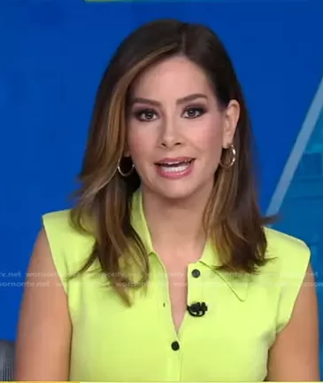 Rebecca Jarvis on Good Morning America on ABC was spotted wearing this yellow polo top on Good Morning America on Jun 14 2024's episode. Rebecca's Top is the Taylor Top by A.L.C..