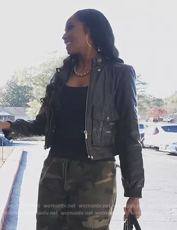 on The Real Housewives of Atlanta on Bravo was spotted wearing this black leather jacket on The Real Housewives of Atlanta on episode 'Rollerstakes and Blind Dates' (15x08) in Jun 2023. 's Jacket is the Moto Leather Jacket by Tory Burch.