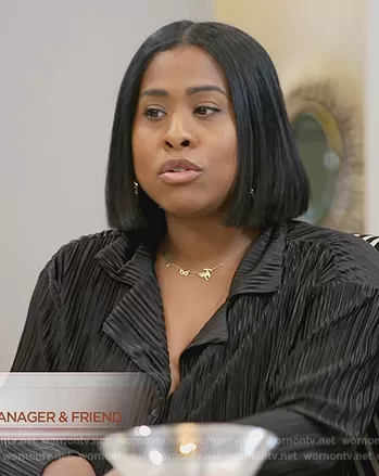 Tye on The Real Housewives of Atlanta on Bravo was spotted wearing this black silk pajamas on The Real Housewives of Atlanta on episode 'Rollerstakes and Blind Dates' (15x08) in Jun 2023.