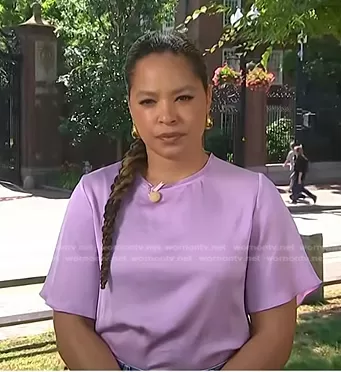 on Today on NBC was spotted wearing this lilac short sleeve top on Today on Jun 29 2023's episode.