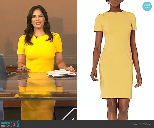 Darlene Rodriguez on Today on NBC was spotted wearing this yellow short sleeve dress on Today on Aug 18 2025's episode. Darlene's Dress is the Sleeveless Fitted Cocktail Sheath Dress by Calvin Klein.
