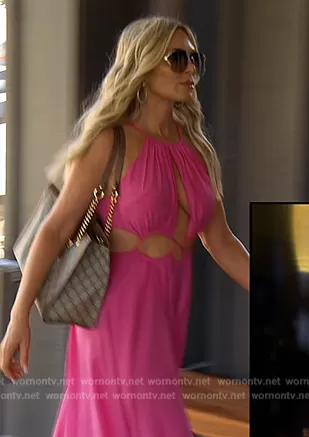 Tamra Judge on The Real Housewives of Orange County on Bravo was spotted wearing this pink cutout dress on The Real Housewives of Orange County on episode 'You Can't DB Serious' (17x04) in Jun 2023. Tamra's Dress is the Cailey Cutout Halter Maxi Dress by Vici.