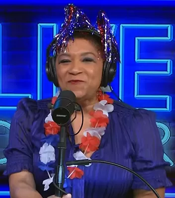Deja Vu on Live with Kelly and Mark on Disney ABC Home Entertainment was spotted wearing this blue tie neck dress on Live with Kelly and Mark on Jul 04 2023's episode. Deja Vu's Dress is the Shadow Stripe Tie Neck Mini Dress by DKNY.