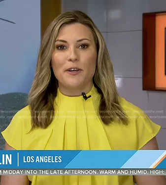 on Today on NBC was spotted wearing this yellow pleated top on Today on Jul 04 2023's episode. 's Top is the Esme Crepe Shirred High-Neck Top by Tibi.