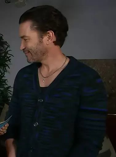 on Access Hollywood on NBC was spotted wearing this blue space dye cardigan on Access Hollywood on Jul 04 2023's episode. 's Sweater is the Cardigan with long sleeves in multicolor by Missoni.