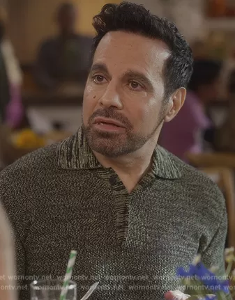 (played by Mario Cantone) on And Just Like That on HBO was spotted wearing this green marled polo on And Just Like That on episode 'Alive' (2x04) in Jul 2023. 's Shirt is the Logo-patch polo shirt by Marni.