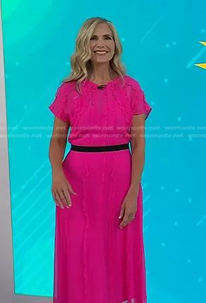 on Today on NBC was spotted wearing this pink ruffle chiffon dress on Today on Jul 07 2023's episode. 's Dress is the Crinkle Chiffon Midi-Dress by Jason Wu Collection.