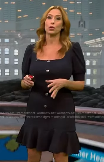 Stephanie Abrams on CBS Mornings on CBS was spotted wearing this navy button front dress on CBS Mornings on Jun 27 2023's episode. Stephanie's Dress is the Square-Neck Buttoned Ruffled-Hem Sheath Dress by Tommy Hilfiger .