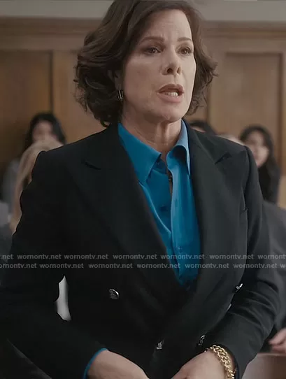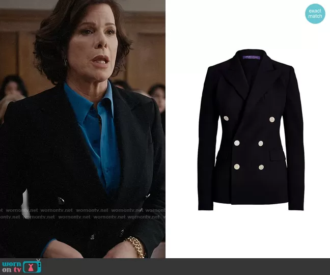 Margaret Wright (played by Marcia Gay Harden) on So Help Me Todd on CBS was spotted wearing this black blazer with silver buttons on So Help Me Todd on episode 'Pilot' (1x01) in Jun 2023. Margaret's Jacket is the Iconic Style Camden Double-Breasted Blazer by Ralph Lauren Collection.