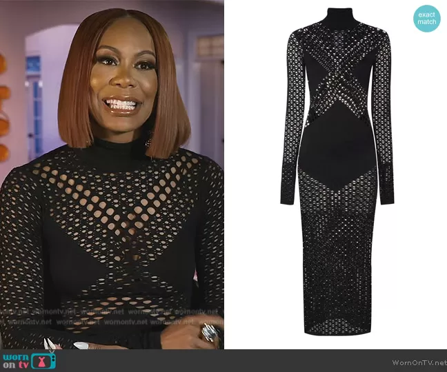 Sanya Richards-Ross on The Real Housewives of Atlanta on Bravo was spotted wearing this black crochet confessional dress on The Real Housewives of Atlanta on episode 'Better Late Than Ugly' (15x09) in Jul 2023. Sanya's Dress is the Pointelle-knit fitted dress by Dion Lee.