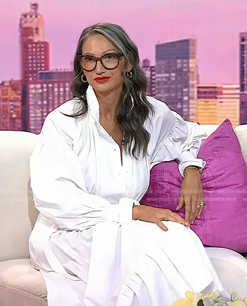 on Today on NBC was spotted wearing this white poplin shirtdress on Today on Jul 11 2023's episode. 's Dress is the Painter Gathered Cotton Maxi Dress by Patou.