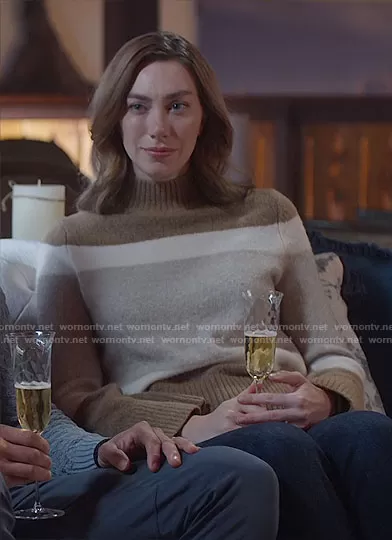 Allison Grant (played by Madeline Wise) on So Help Me Todd on CBS was spotted wearing this beige and grey colorblock sweater on So Help Me Todd on episode 'Long Lost Lawrence' (1x07) in Jun 2023. Allison's Sweater is the Relaxed Color Block Sweater in Iced Latte by Banana Republic.