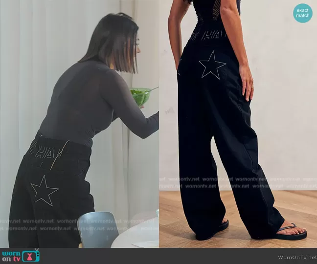 Kourtney Kardashian (played by Kourtney Kardashian) on The Kardashians on Hulu was spotted wearing this black star embroidered pants on The Kardashians on episode 'I Have Some Very Important News' (3x08) in Jul 2023. Kourtney's Pants is the Black Baggy Jeans by Niihai at Urban Outfitters.