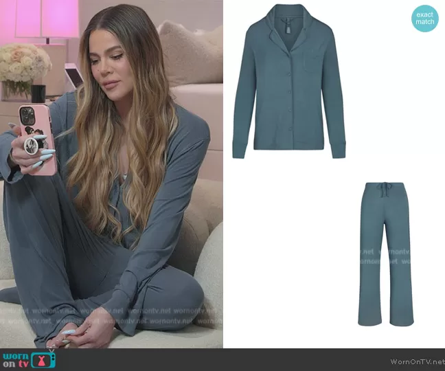 Khloe Kardashian (played by Khloe Kardashian) on The Kardashians on Hulu was spotted wearing this blue pajamas on The Kardashians on episode 'I Have Some Very Important News' (3x08) in Jul 2023. Khloe's Pajamas is the Sleep Wear Set by Skims.