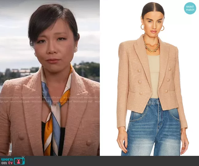 Weijia Jiang on CBS Mornings on CBS was spotted wearing this beige tweed blazer on CBS Mornings on Jul 13 2023's episode. Weijia's Jacket is the Brooke Tweed Blazer in Praline by L'Agence .