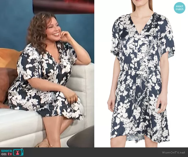 Vince Arboretum Floral Crinkled Satin Dress worn by Justina Machado on Access Hollywood