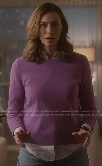 Allison Grant (played by Madeline Wise) on So Help Me Todd on CBS was spotted wearing this purple sweater on So Help Me Todd on episode 'The Devil You Know' (1x10) in Jun 2023. Allison's Sweater is the Cashmere classic-fit crewneck sweater by J. Crew.