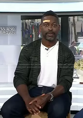on Today on NBC was spotted wearing this grey space dye cardigan on Today on Jul 13 2023's episode. 's Sweater is the Lightweight Wool Knit Cardigan by Missoni.